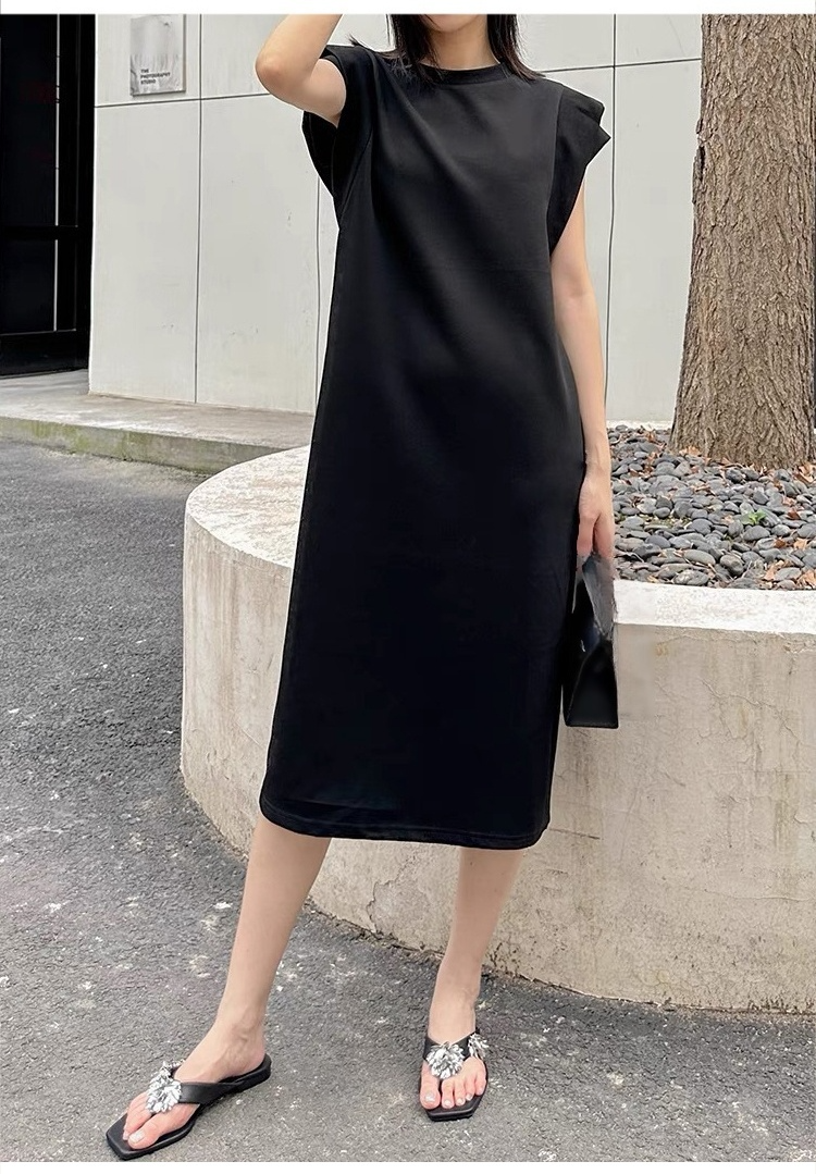 トレンド感あるフレンチスリーブワンピースのバックスタイル